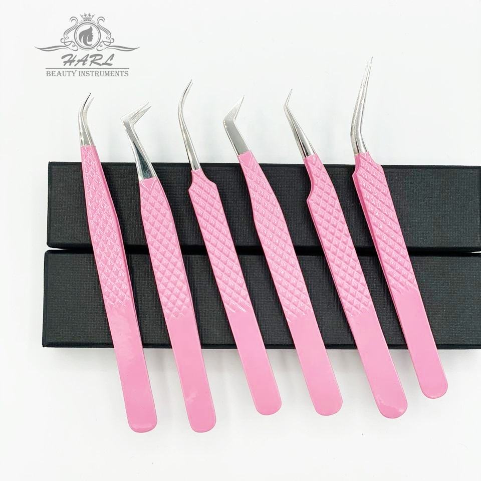 Pinzas de pestañas rosas para bebé para aislamientos de extensiones de pestañas y formas de bota curvas y de volumen, pinzas para pestañas, herramientas de belleza