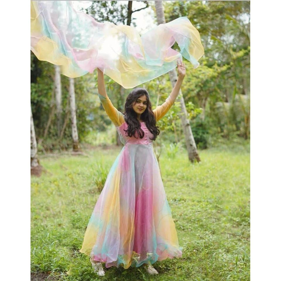 Vestido de trabajo con estampado digital de seda de organza a la moda Rosa bebé con vestidos de noche elegantes Dupatta