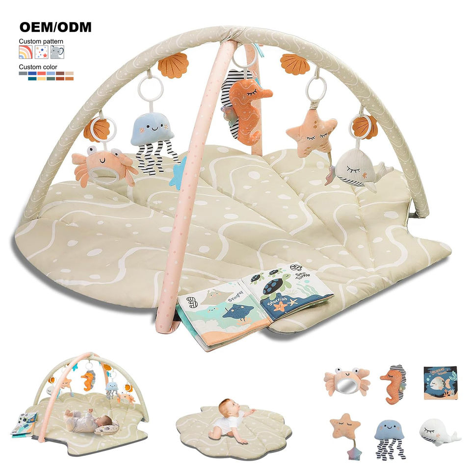 Alfombra de Juego para Bebés, Alfombra de Actividades para el Tiempo Boca Abajo para Bebés de 0 a 6 Meses, Linda Alfombra de Juego con Forma de Concha con 6 Juguetes Desmontables