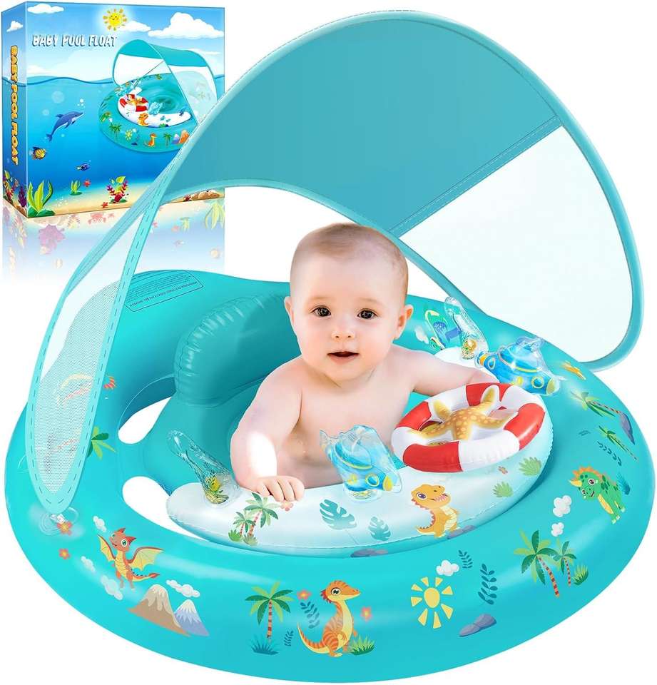 Flotador de Piscina para Bebés con Toldo, de 6 a 36 Meses, Anti-Vuelco, con Protección Solar UPF50+ y Asiento Ajustable