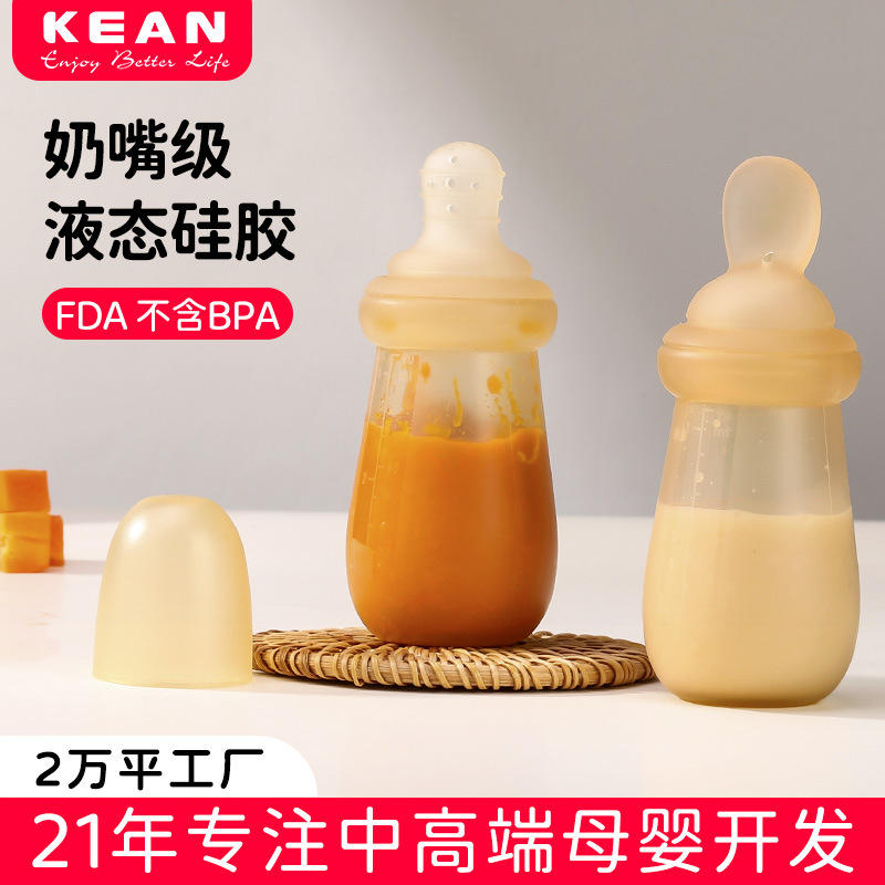 Cuchara de Silicona para Cereal de Arroz para Bebés, Biberón Suave para Alimentación de 0 a 12 Meses, Material de Grado Alimenticio Libre de BPA