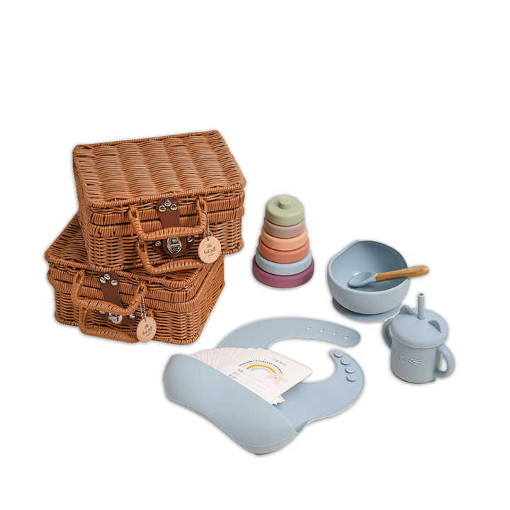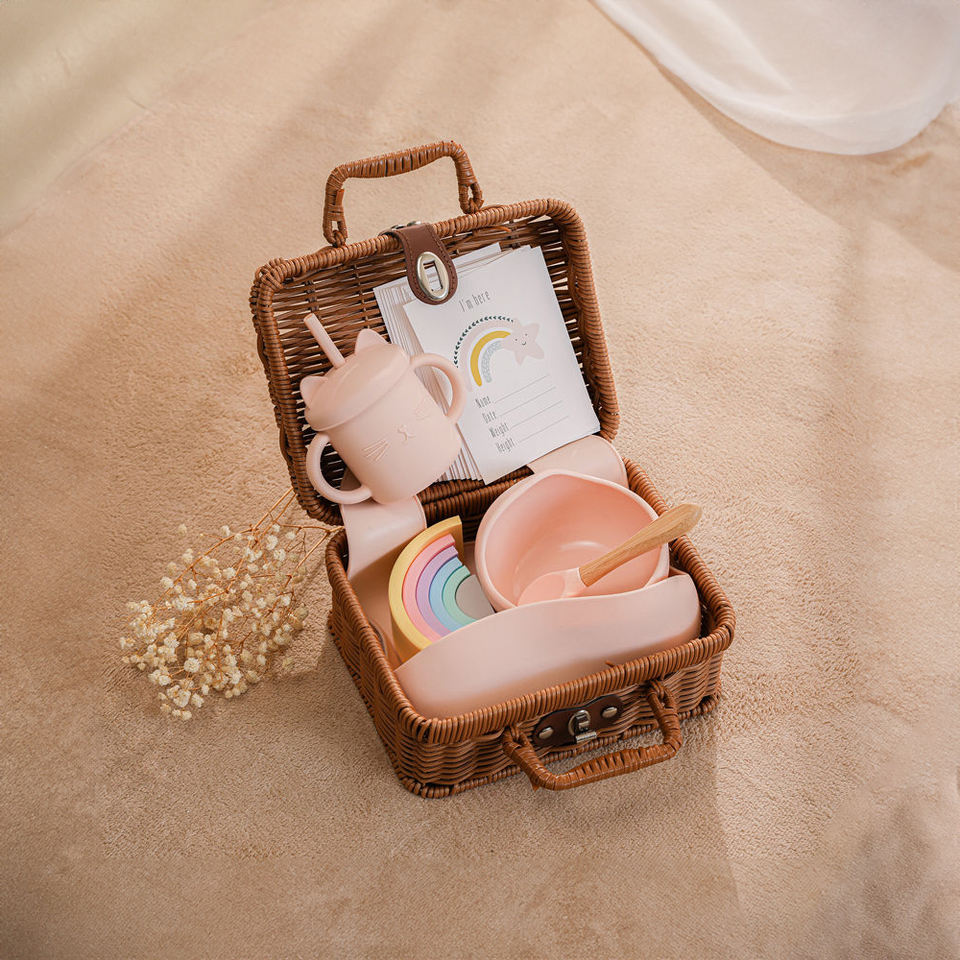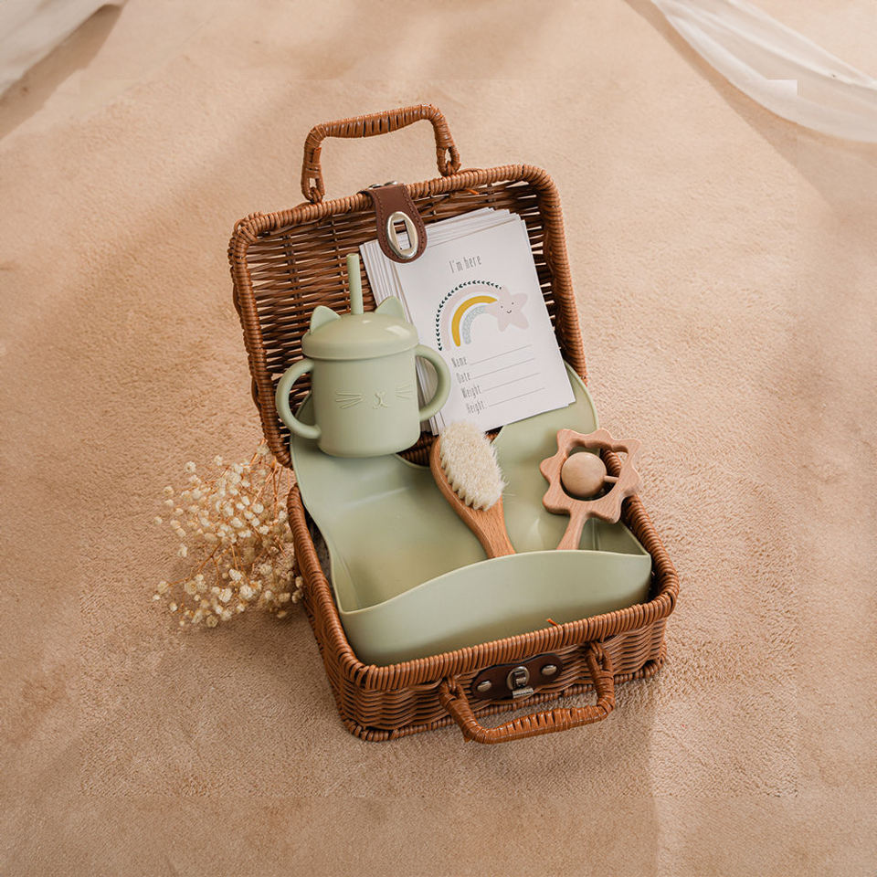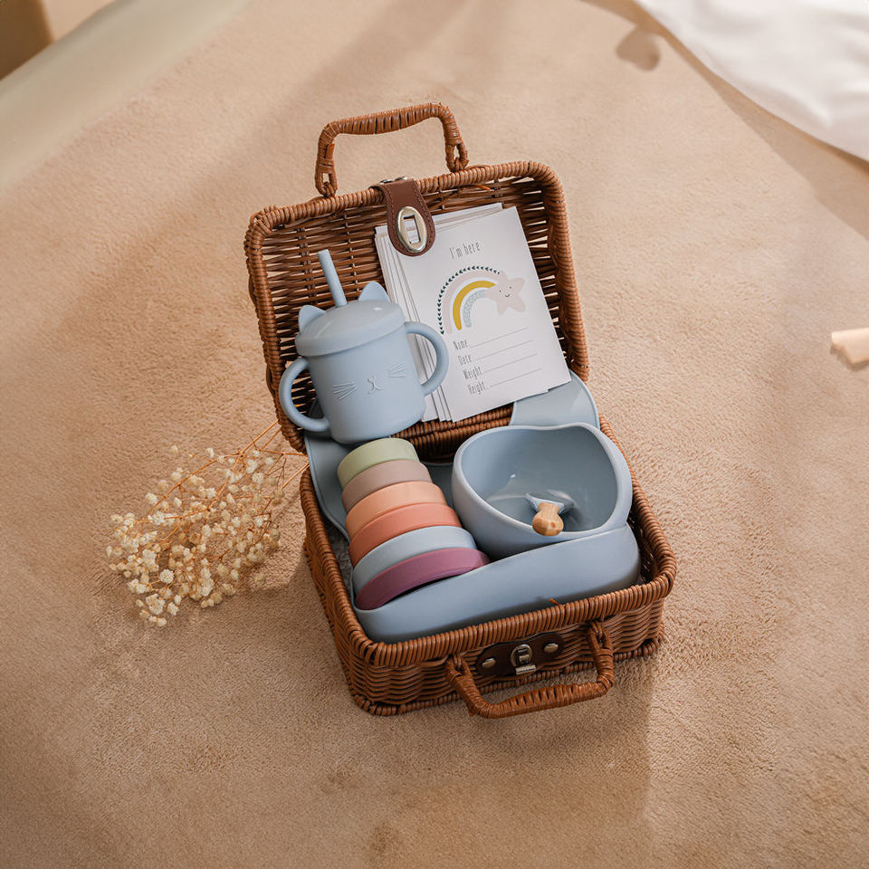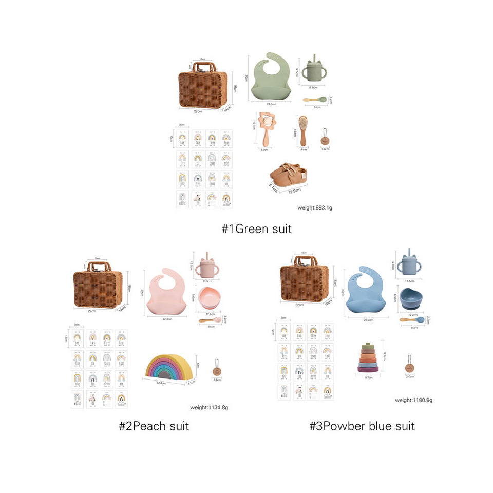 Juego de juguetes apiladores de arcoíris de silicona para bebé, caja Vintage de nacimiento para bebé, regalos, caja de juego de alimentación para bebé