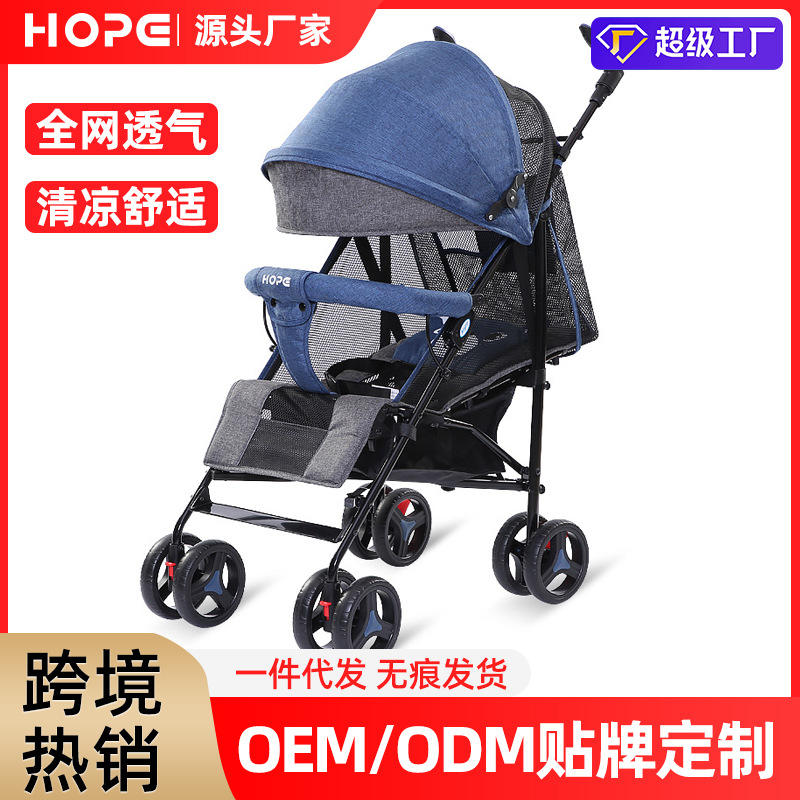 Cochecito de bebé reclinable, ligero, plegable, de cuatro ruedas, tipo paraguas, con respaldo rígido y cinturón de nailon reforzado para