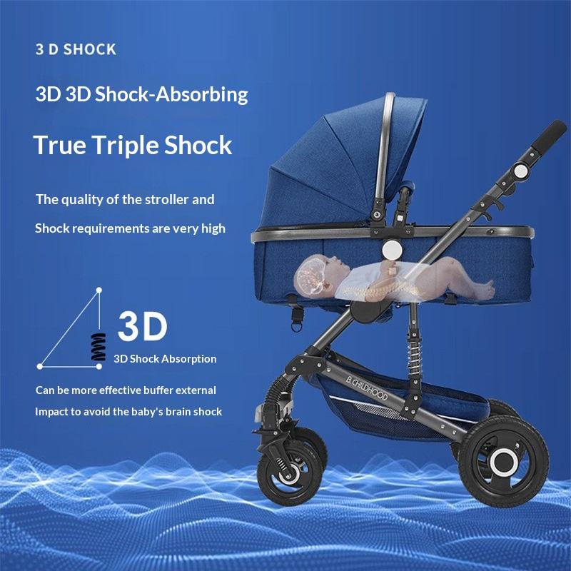 Cochecito de Bebé Bidireccional, Alto, con Posición Sentada y Acostada, Plegable, Ligero, con Amortiguación, de Aleación de Aluminio, para Bebés de 0 a 6 Meses