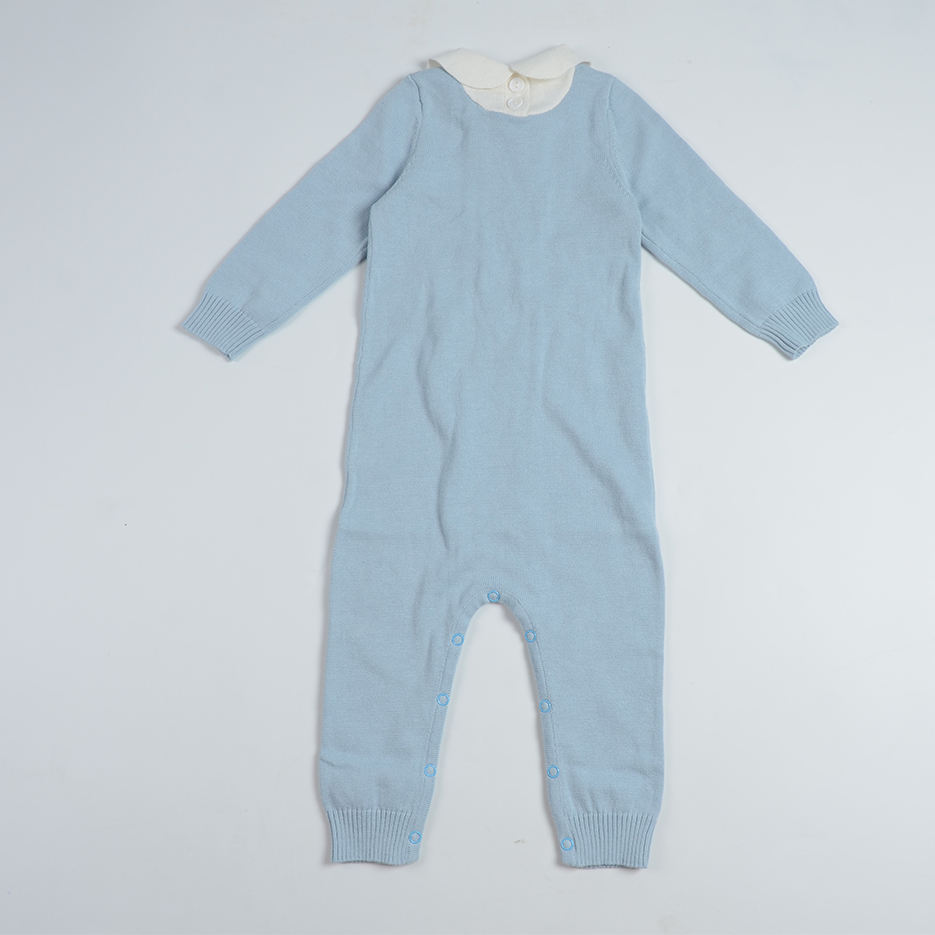 Bebé llevar a casa traje botón trasero suéter canastilla para Recién Nacido azul manga larga mameluco bordado piqué blanco cuello canastilla Bébé