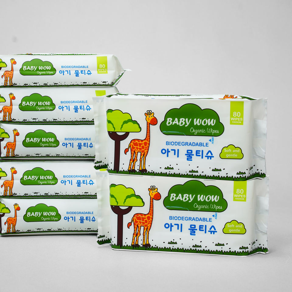 Toallitas húmedas de tela no tejida ecológicas compactas de tamaño personalizado Baby Wow de 80 unidades, refrigeración de limpieza del hogar perfumada