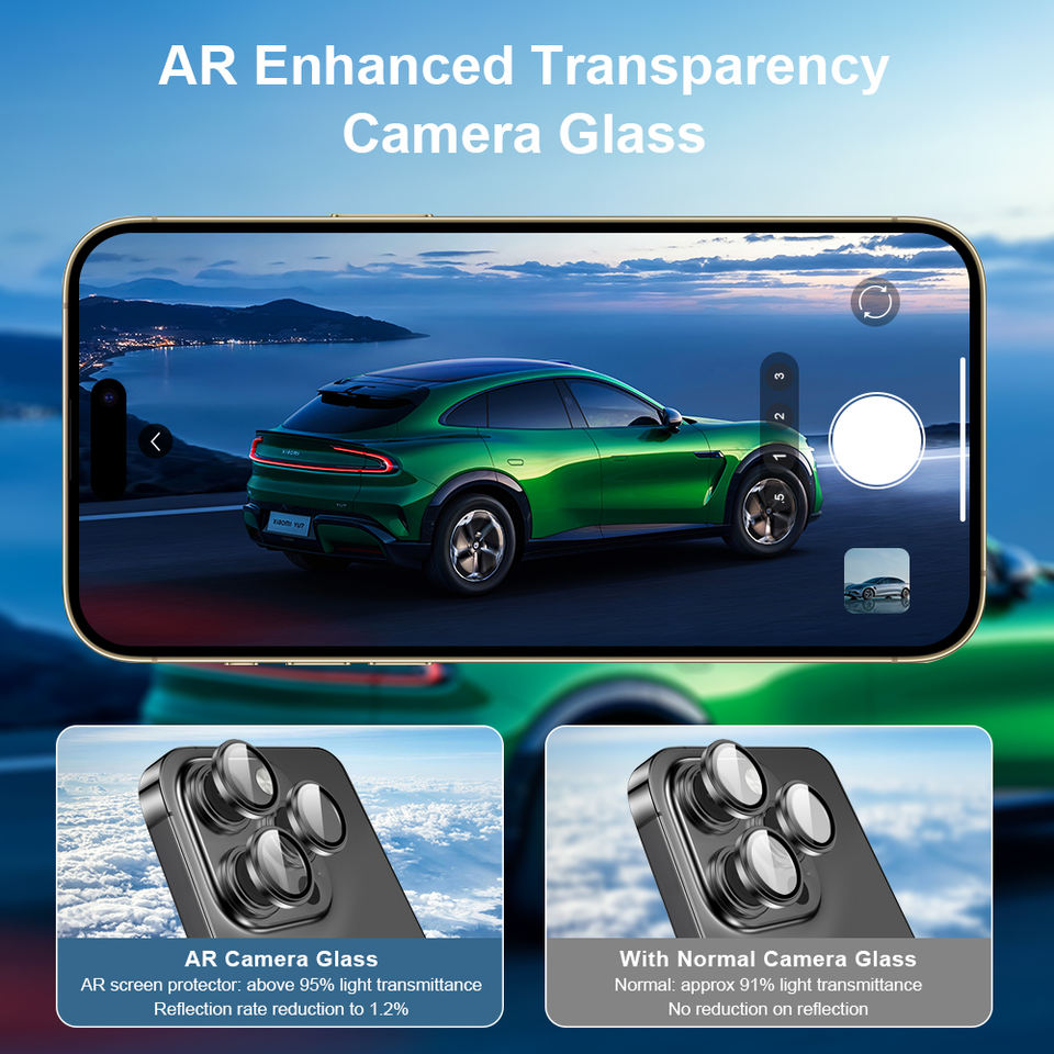 Protector de Cristal Templado para Cámara Trasera de iPhone 17 Pro Max 16 Pro, Transparencia HD, Revestimiento AR, Cubierta de Lente Metálica a Prueba de Explosiones