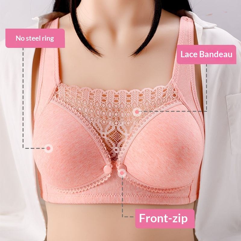 Ropa Interior de Lactancia para Mujeres Embarazadas, con Cierre Trasero, Encaje Gótico, Algodón Sólido, Sin Varillas, Push-Up, Anti-caída