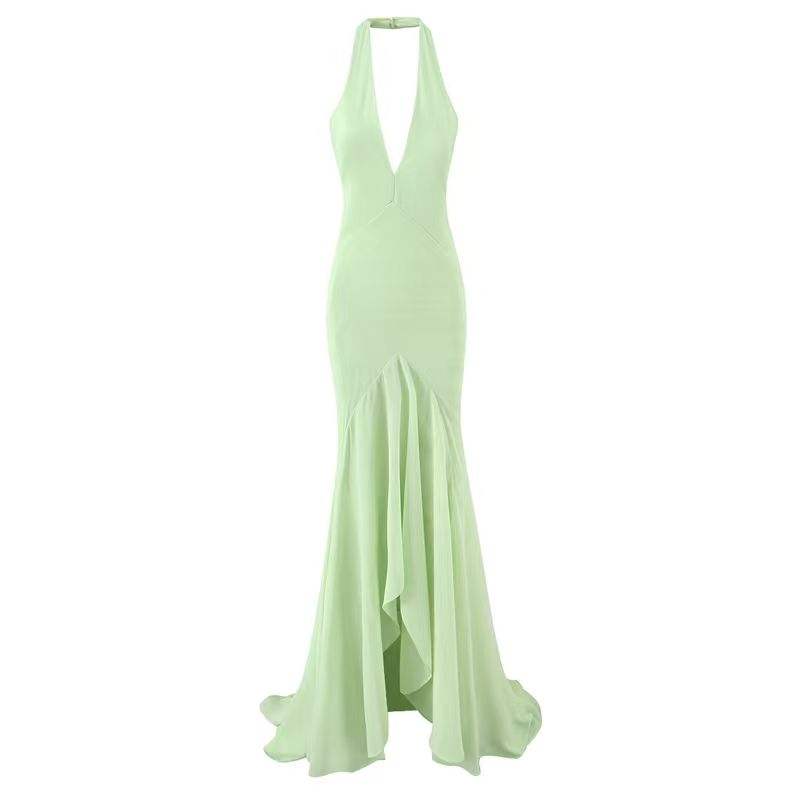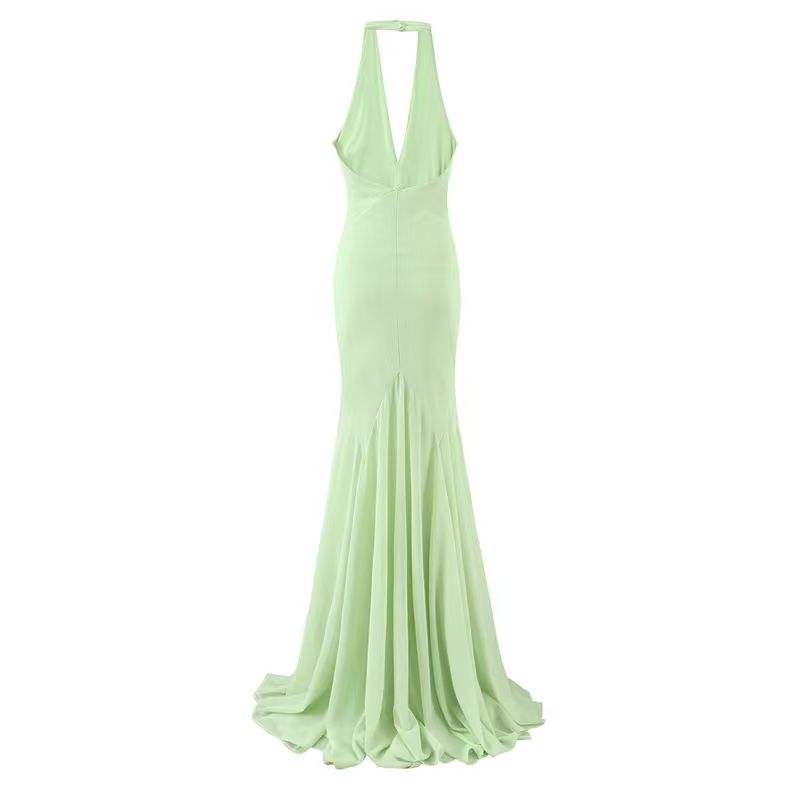 Vestido Maxi Halter Verde sin Mangas con Espalda Descubierta, de Moda Casual, en Oferta para Mujer