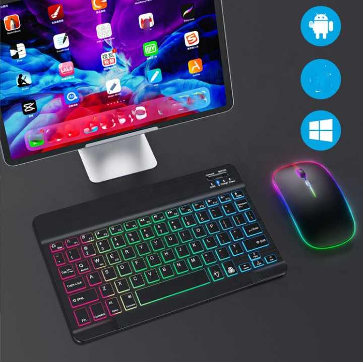 Ratón y teclado inalámbricos retroiluminados para Ios Andnroid Windows Tablet Pc Smart Phone Mini Bluetooths Mouse combinación de teclado