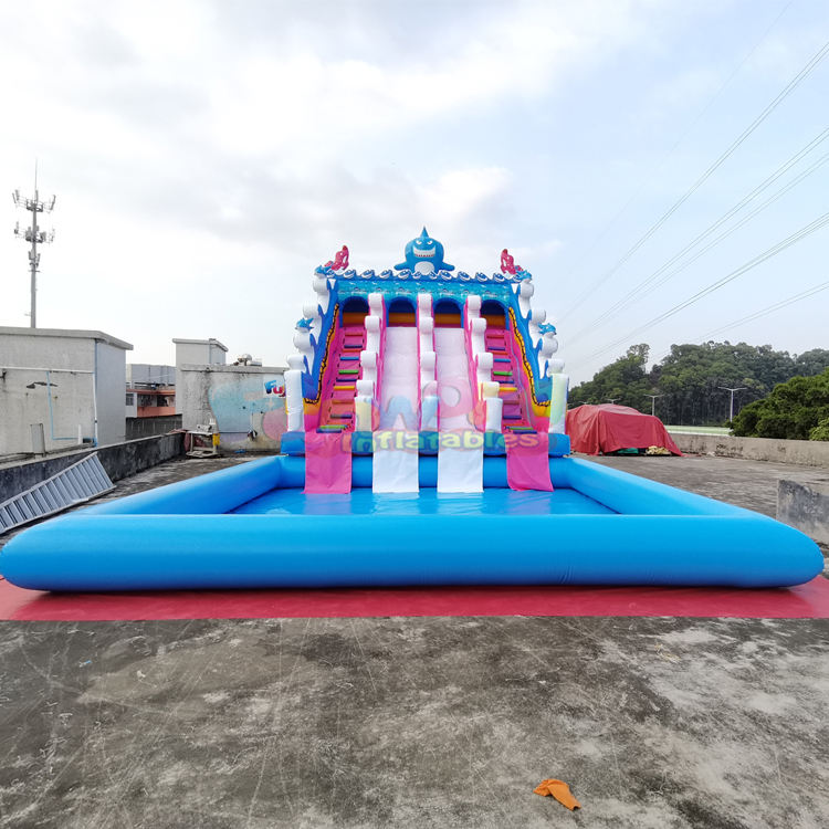 Castillo Inflable Comercial de PVC para Jardín, Tobogán Acuático Inflable de Doble Carril con Piscina para Niños, Uso en Exteriores