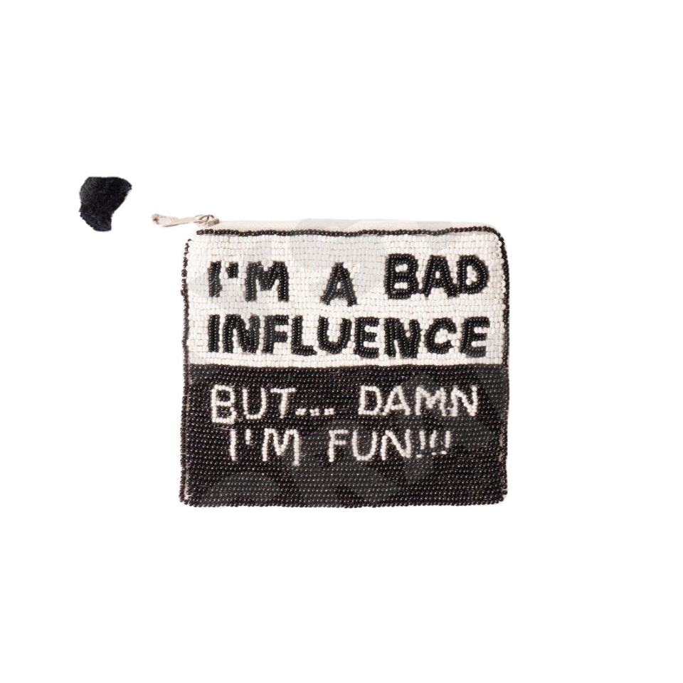 Bolsa para monedas Bad Influence, billetera personalizada con cuentas de semillas, hermoso regalo para mamá, diseño de corazones para niñas