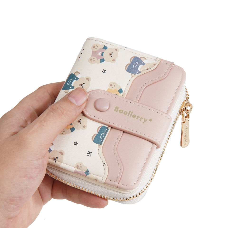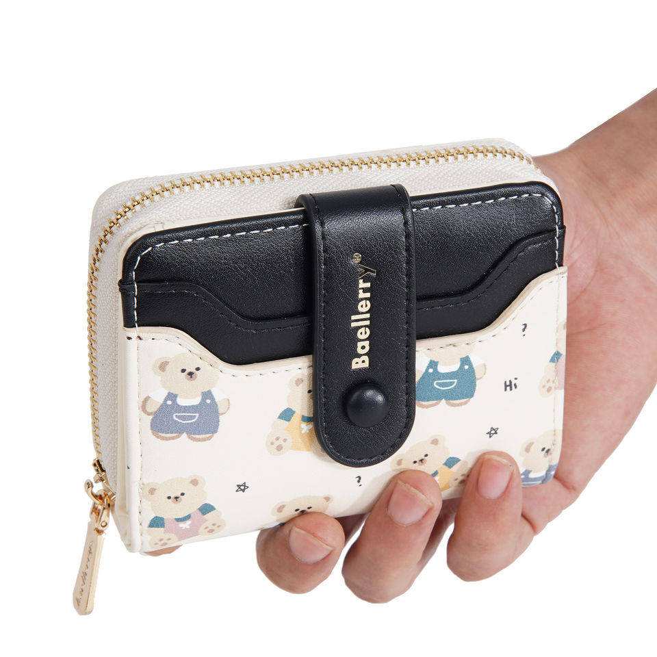 Baellerry, cartera corta con múltiples ranuras para tarjetas para mujer, bolso de mano de cuero Pu a la moda para mujer, bolso impermeable con patrón de oso pequeño para mujer