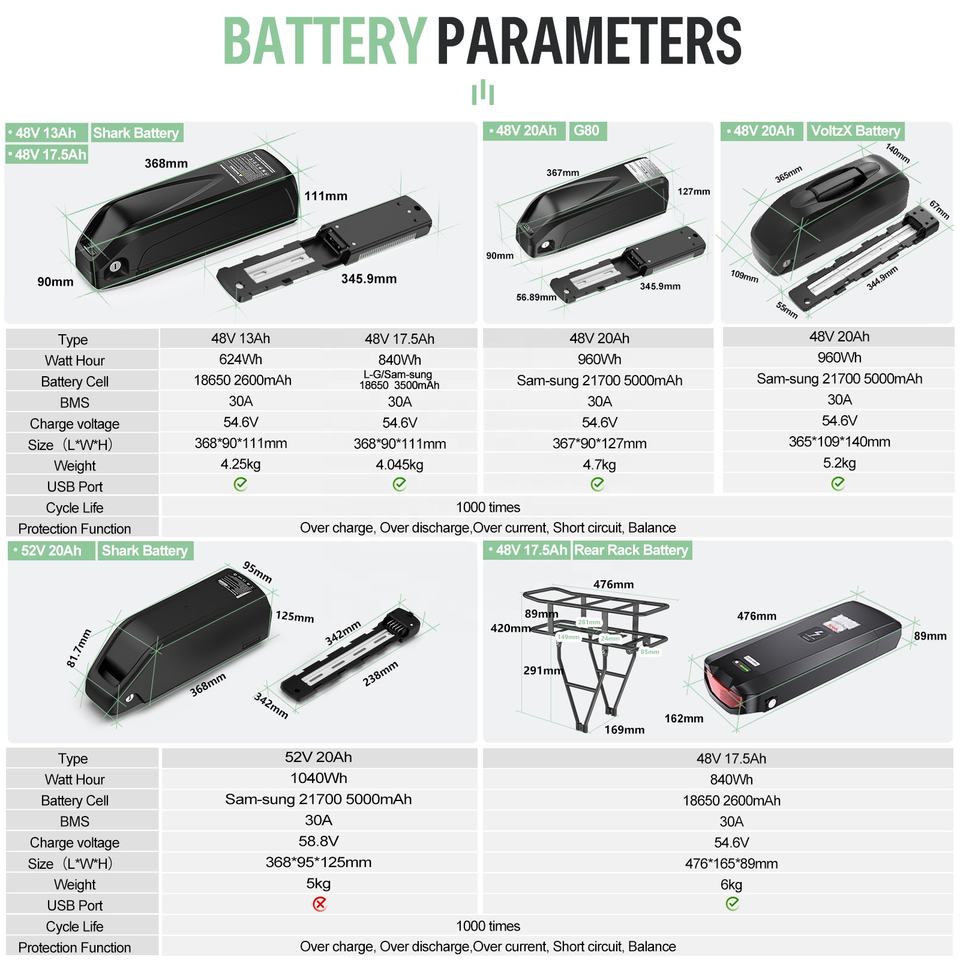 13AH, 17.5Ah, 19,2 Ah, 20 amperiosCapacidad de la batería
