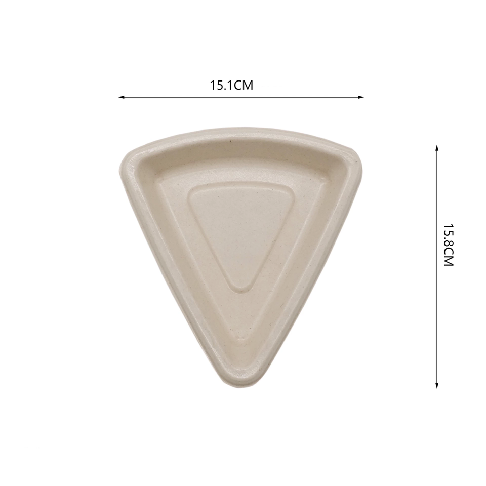 Bagazo 125ml Plato desechable biodegradable Pulpa Pizza Pan Bandeja para pasteles con junta Parte inferior Bandeja para hornear triangular ecológica