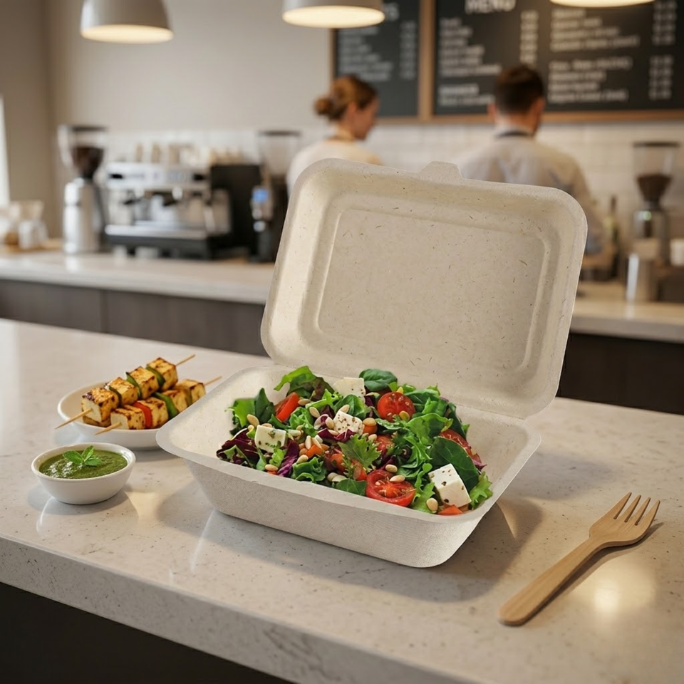 Desechables, Biodegradable, Apto para microondas, Bagazo de caña de azúcar, Refrigerado