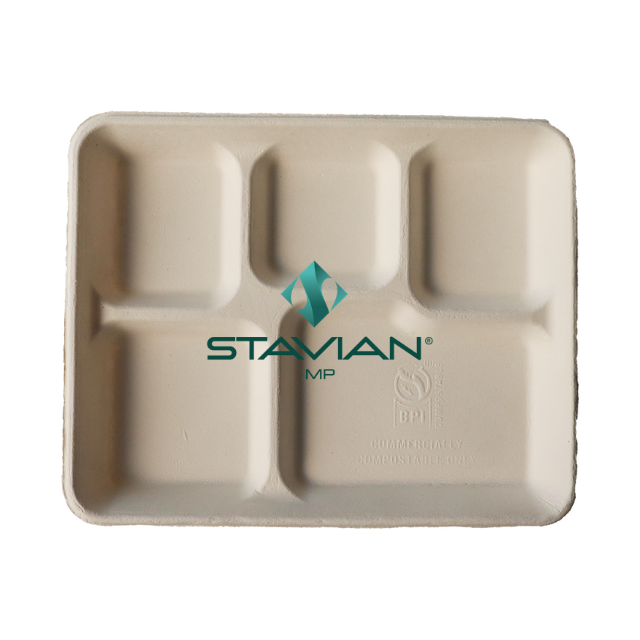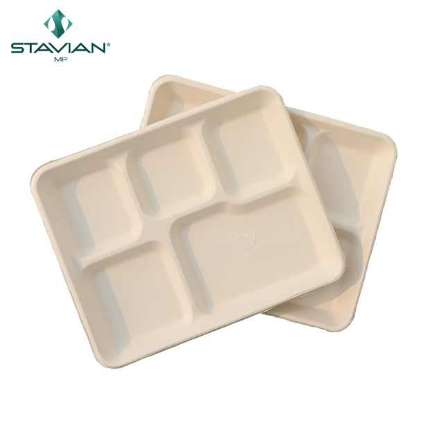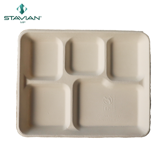 Bandejas de comida bagazo 5 compartimentos 530Ml apto para microondas a prueba de aceite impermeable biodegradable OEM vajilla desechable vajilla