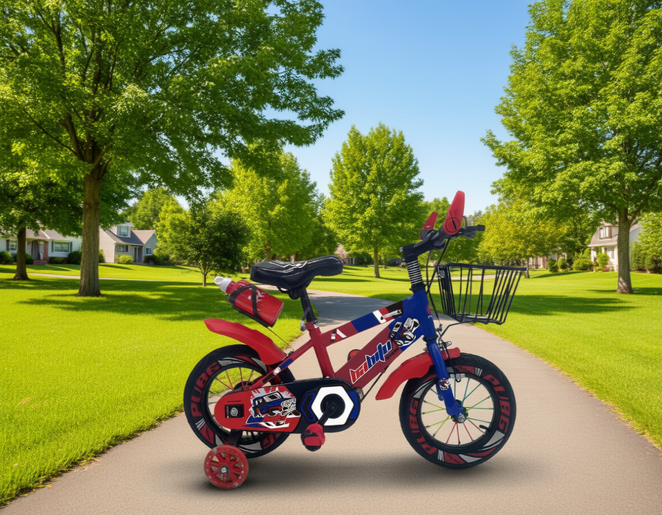 Bicicleta Infantil Baidu de 12 Pulgadas con Ruedas de Entrenamiento, Canasta Metálica, Asiento Cómodo, para Niños de 3 a 6 Años, Uso en Exteriores