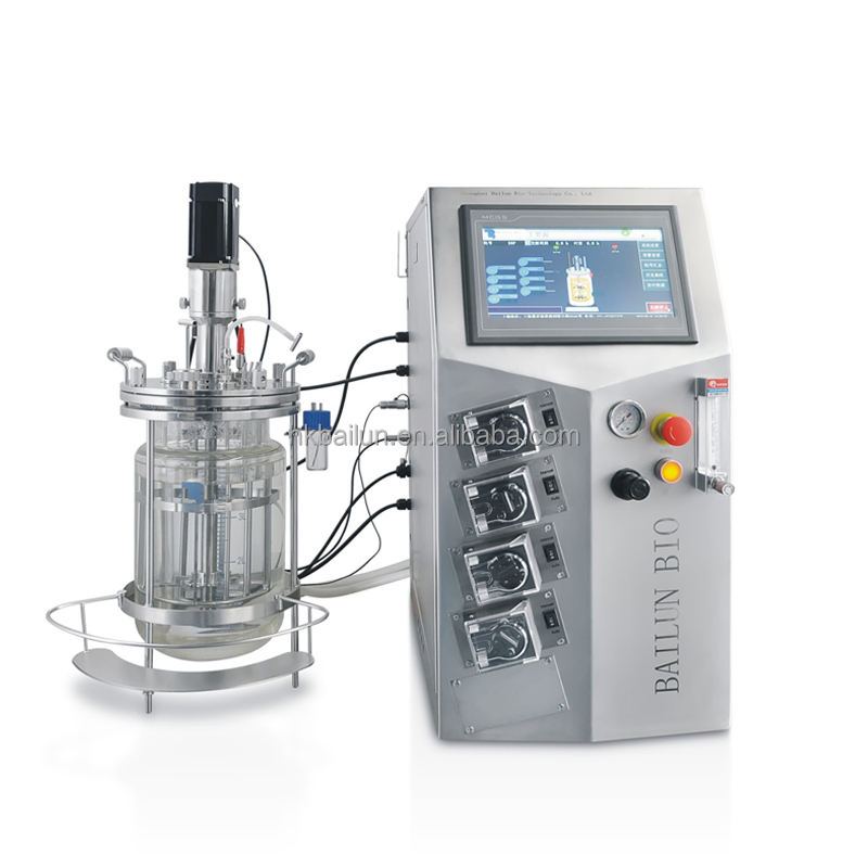 Biorreactor de vidrio de doble pared Bailun 2L Sparger, impulsores, deflectores, puertos de muestreo, líneas de cosecha