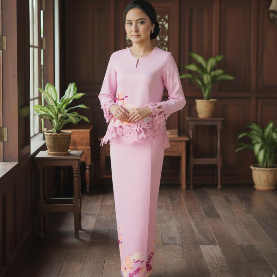 Kebaya Directo de Fábrica, Moderno, Estilo Kedah, con Bordado Smocking, Encaje, Sin Plancha, Crepé Cey, Transpirable, Elástico en Cuatro Direcciones, Tendencia Viral Raya 2025