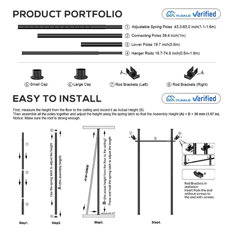 Height adjustable: 1.1-3 m (43.3-118.1 inches).
