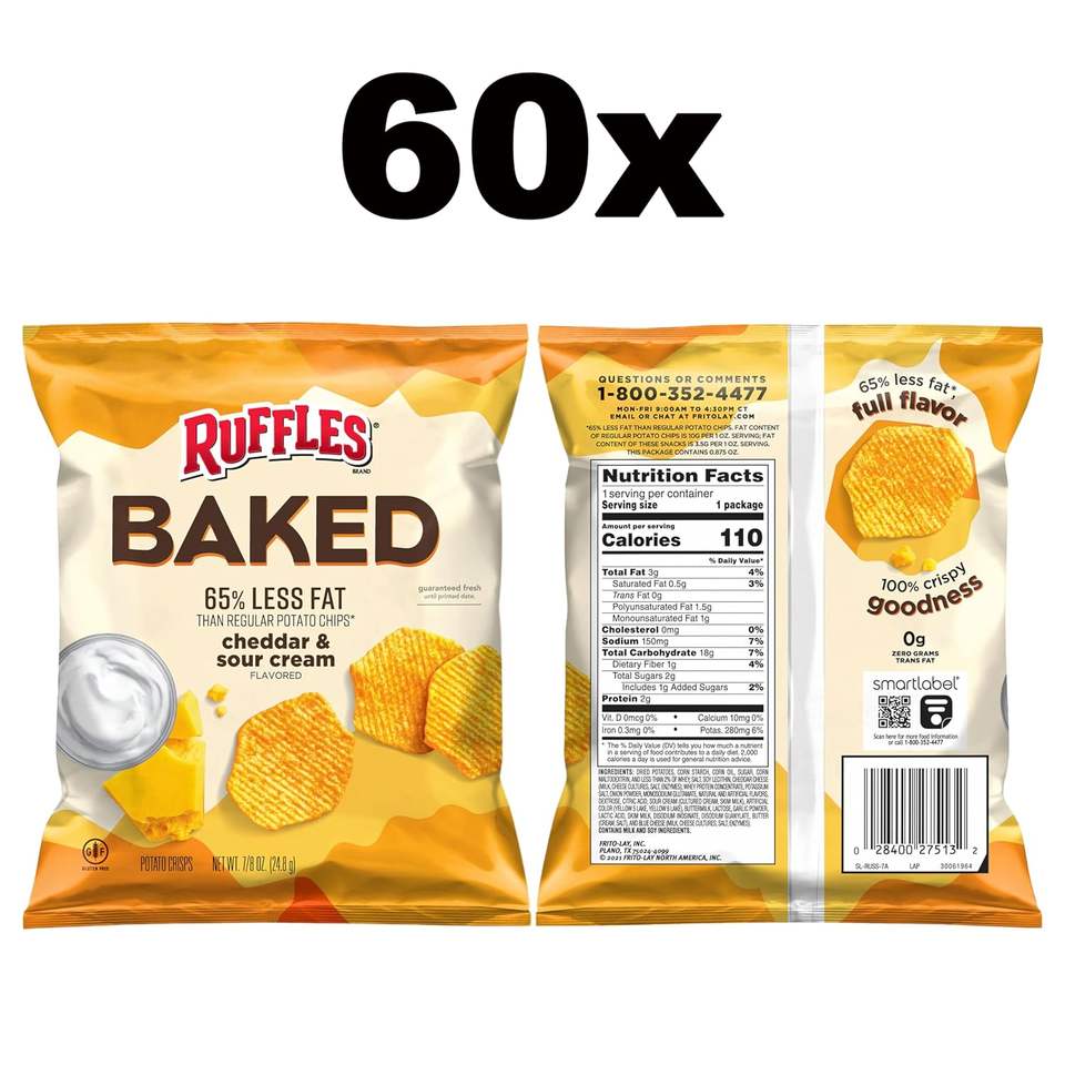 Baked, Ruffles Cheddar y Crema Agria, 0.8 Onzas (Paquete de 60)