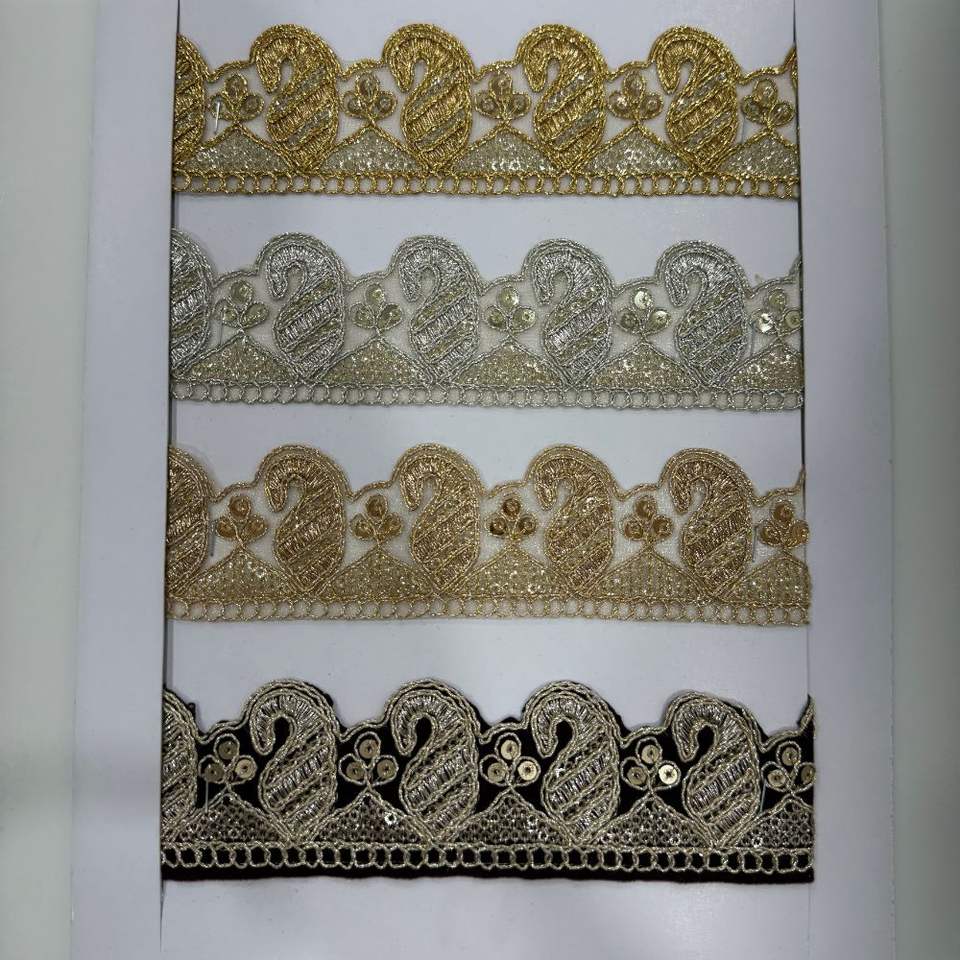 Material:Bordado neto del poliéster, lentejuelas, hilo metálico