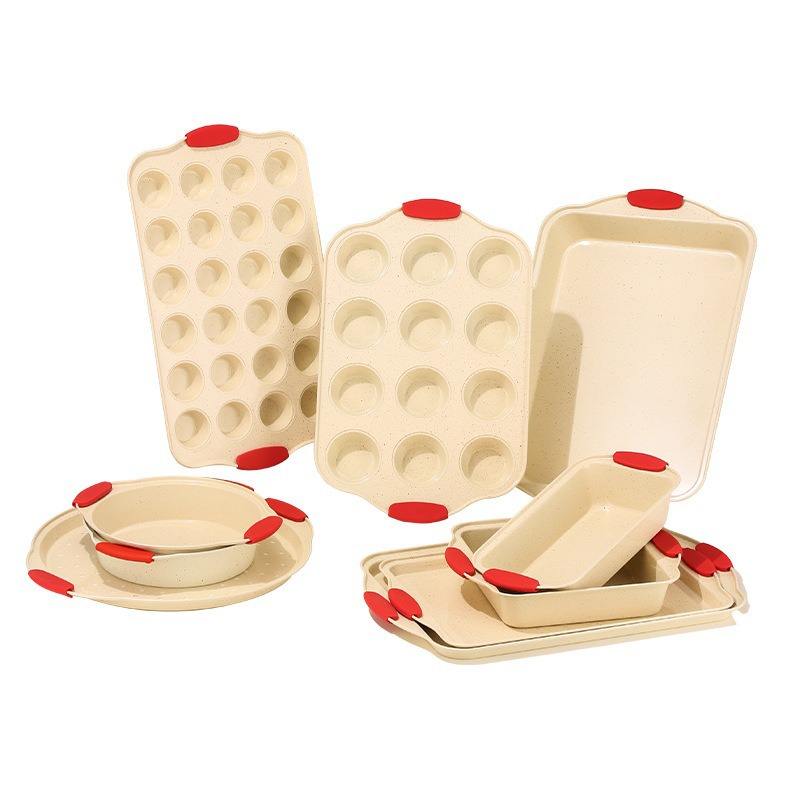 Juego de moldes para hornear de 10 piezas, de acero al carbono con revestimiento antiadherente, para hornear en casa, moldes para pan y pizza, aptos para lavavajillas, color blanco.