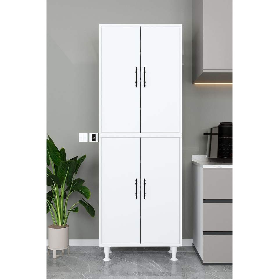 Gabinetes de Cocina Multiusos Bala Blancos de 4 Puertas con 4 Estantes, Diseño de Despensa, Almacenamiento Moderno y Ecológico para Despensa
