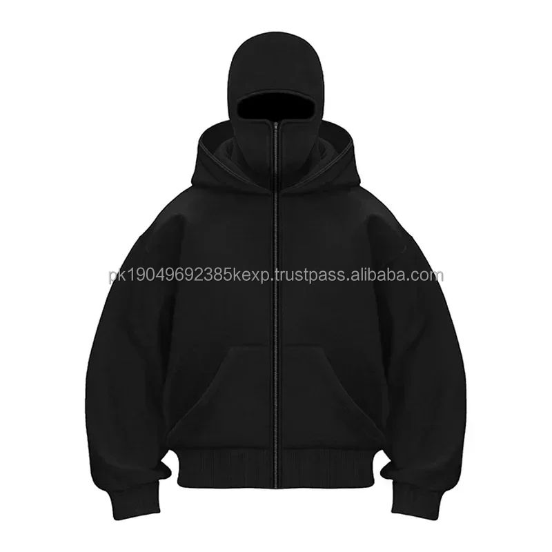 Sudadera con Capucha y Cremallera para Hombre, Estilo Y2K, Cálida para Invierno, Informal, con Máscara Facial Integrada, Diseño con Cremallera, Chaqueta Deportiva para Actividades al Aire Libre