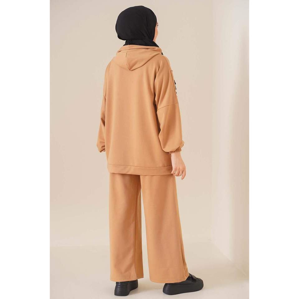 Equilibrio Carta Bordado Con Capucha Camel 2 Piezas Set