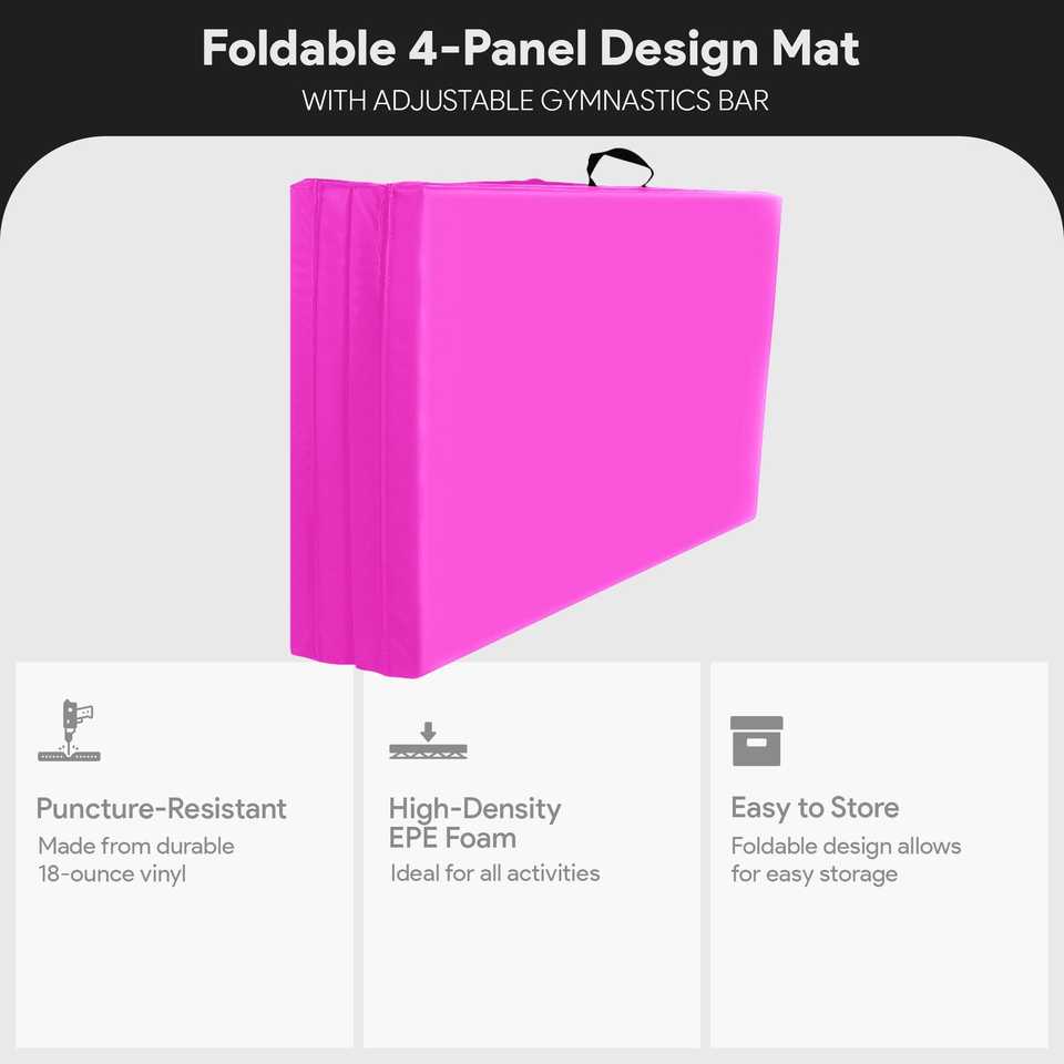 BalanceFrom - Tapete de Ejercicio Rosa de 120 x 48 Pulgadas y Barra de Gimnasia Ajustable, Equipo y Accesorios de Fitness
