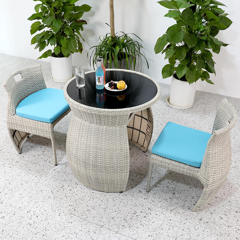 Balcón una mesa dos sillas Silla de ratán conjunto de tres piezas de patio al aire libre terraza de ocio mesas y sillas