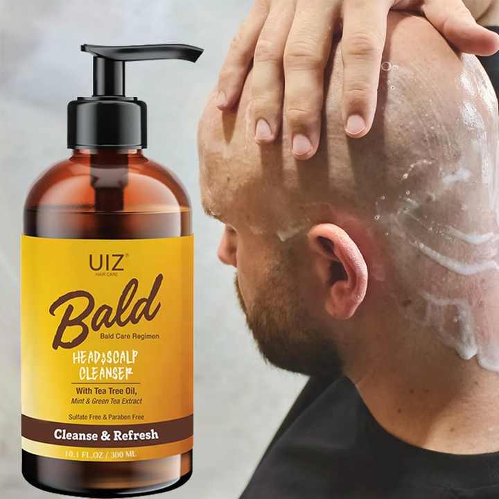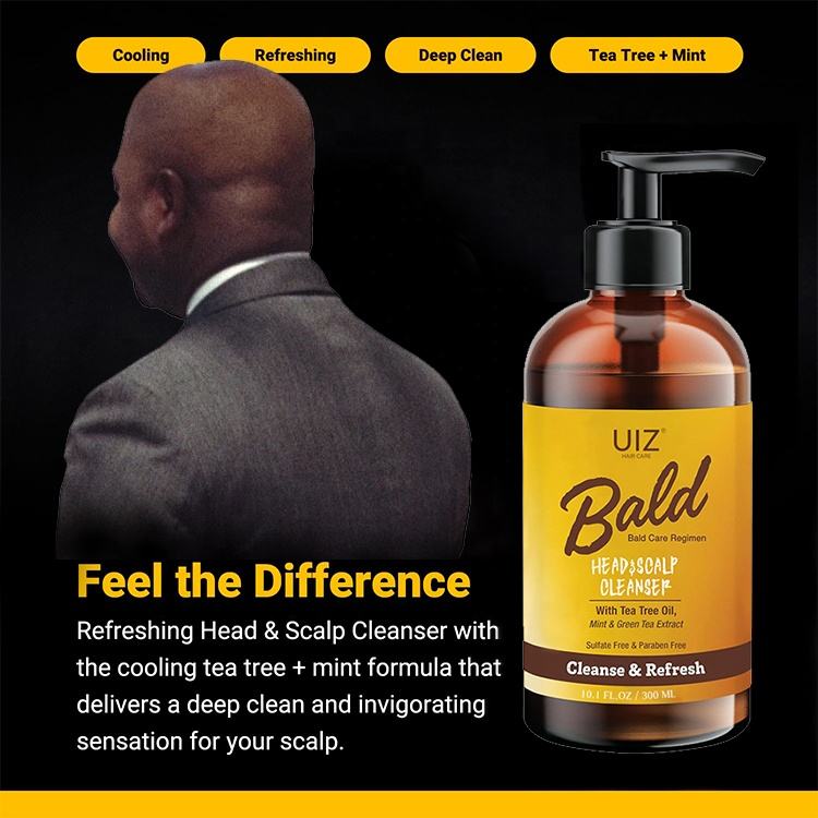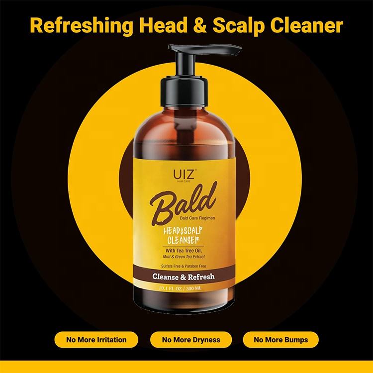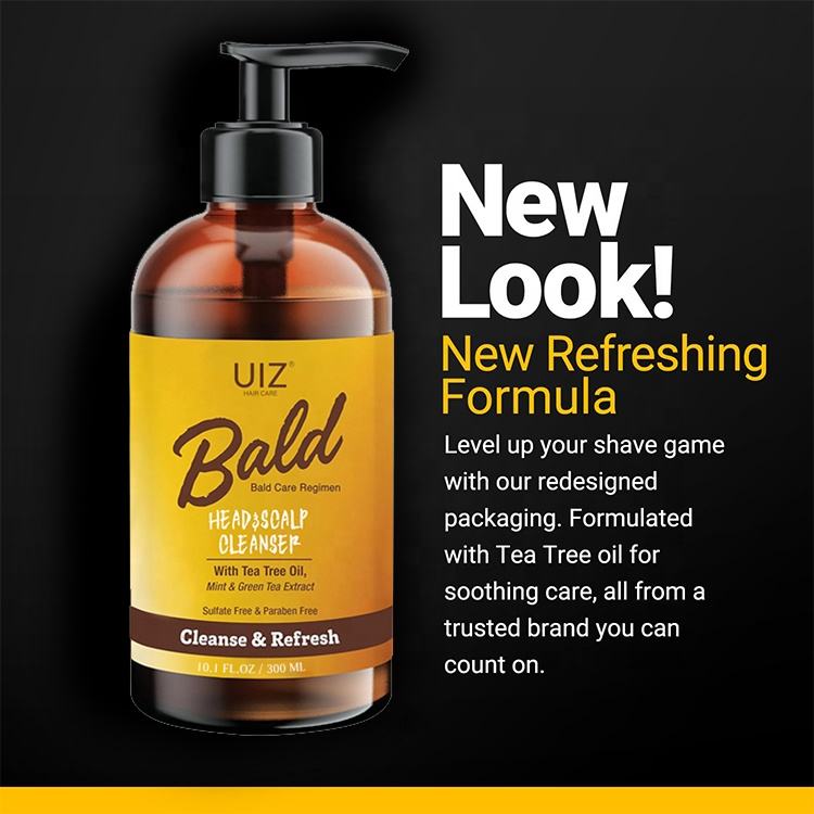 Champú para cabeza calva y cuero cabelludo, aceite de árbol de té, limpiador profundo de menta, alivia la picazón del cuero cabelludo para hombres