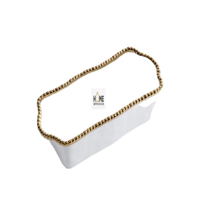Bandeja grande de lujo de diseñador con borde de bola, bandeja de cuencos de decoración blanca y dorada, bandejas de centro de mesa de boda elegantes hechas a mano