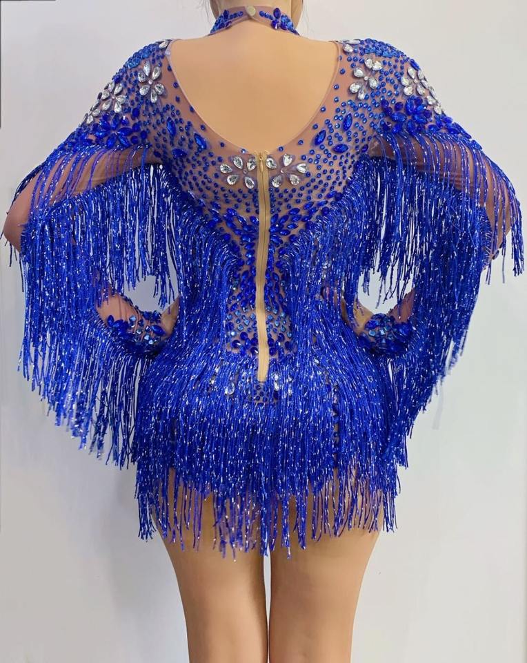 Vestido de Noche Rojo Sexy de Talla Grande con Lentejuelas, Flecos, Cuello Halter y Borlas para Espectáculo de Danza del Vientre