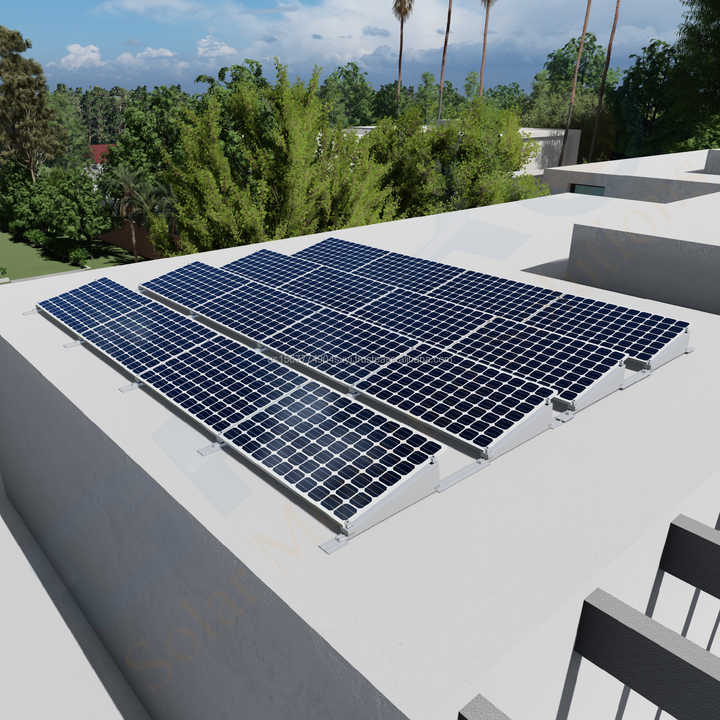 Soporte de panel solar ALU de montaje solar de techo plano balastado para construcción de techo plano Sistema de montaje solar de techos de hormigón