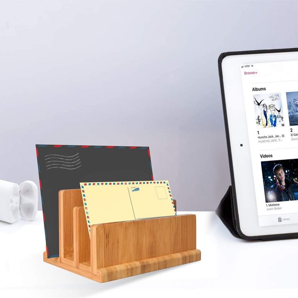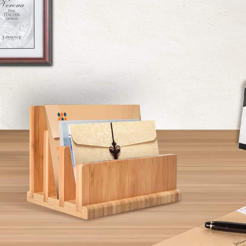 Nombre del producto:Estante de escritorio inclinable de bambú de 3 segmentos para clasificar suministros de oficina