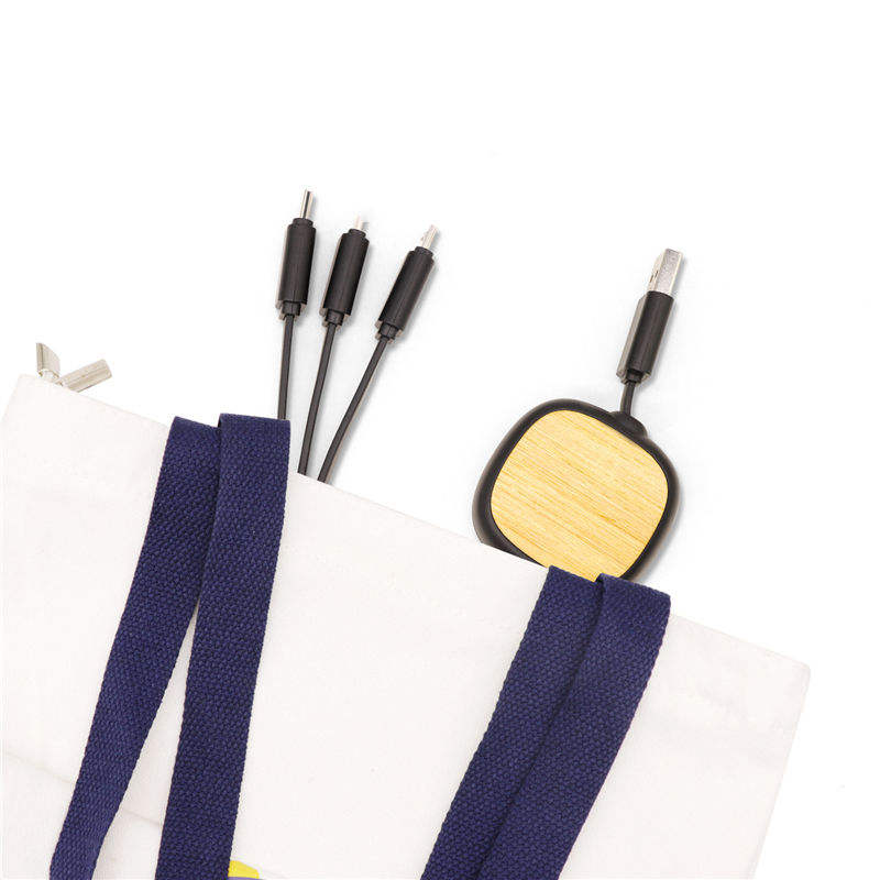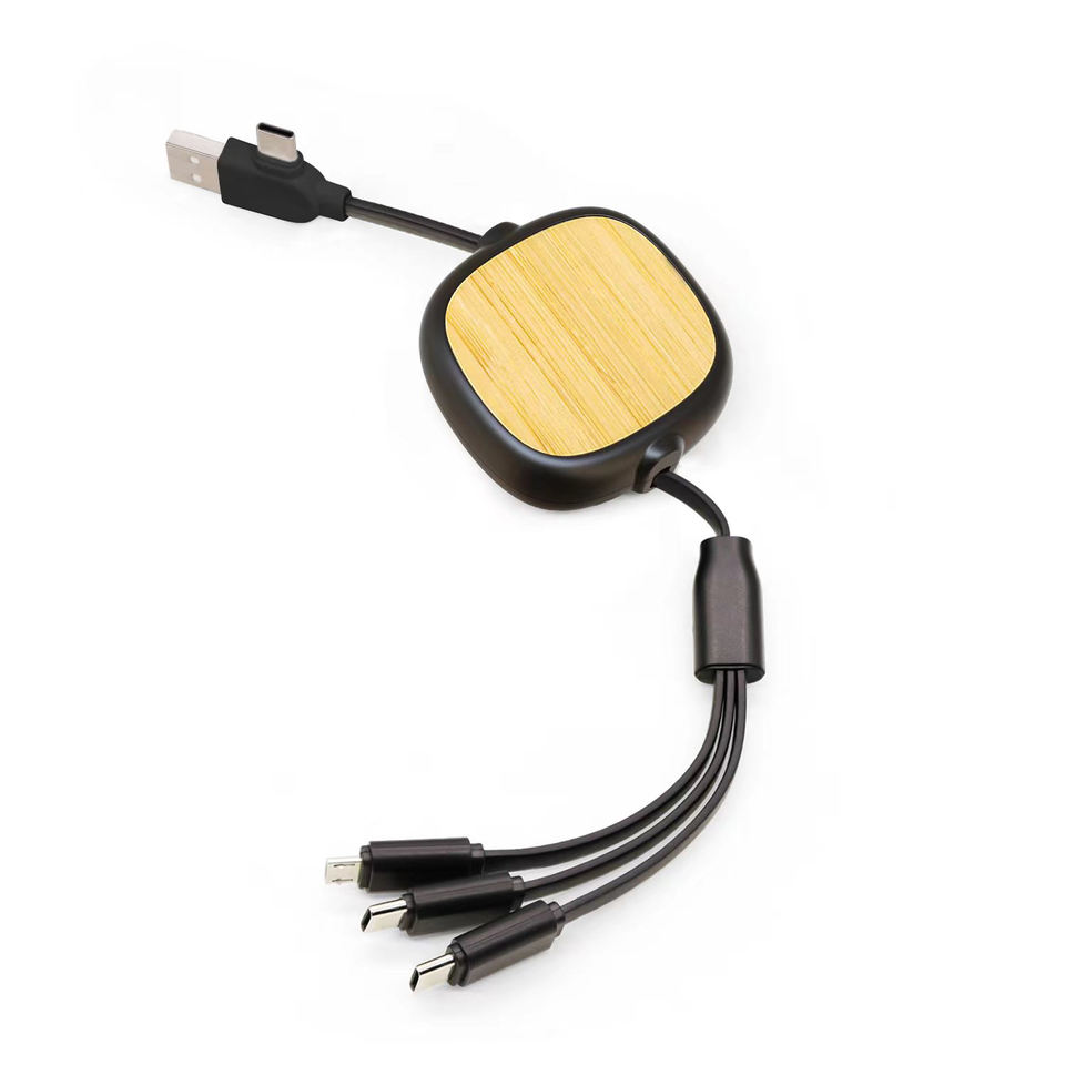 Cable cargador de datos múltiples 4 en 1 de bambú logotipo personalizado Tpe retráctil Mirco carga rápida Usb a Cable tipo C para regalo de promoción