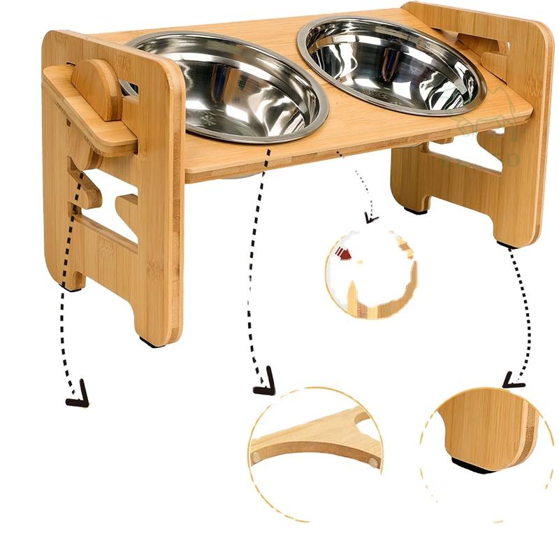 Bamboo Adjustable Pet Feeder For DogsTipo