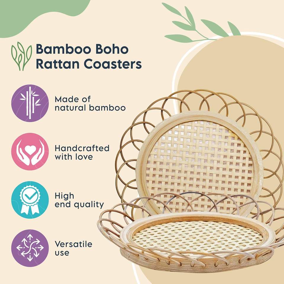 Posavasos de Bambú y Ratán Estilo Boho, Posavasos Tejidos de Mimbre Retro Rústicos para Café, Té y Bebidas, Manteles Individuales Naturales para el Hogar