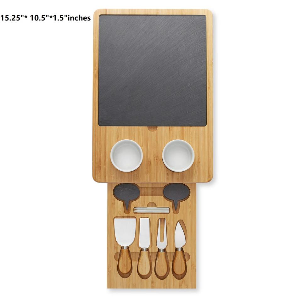 Nombre del Producto:Tabla de bambú para quesos y embutidos con juego de cubiertos