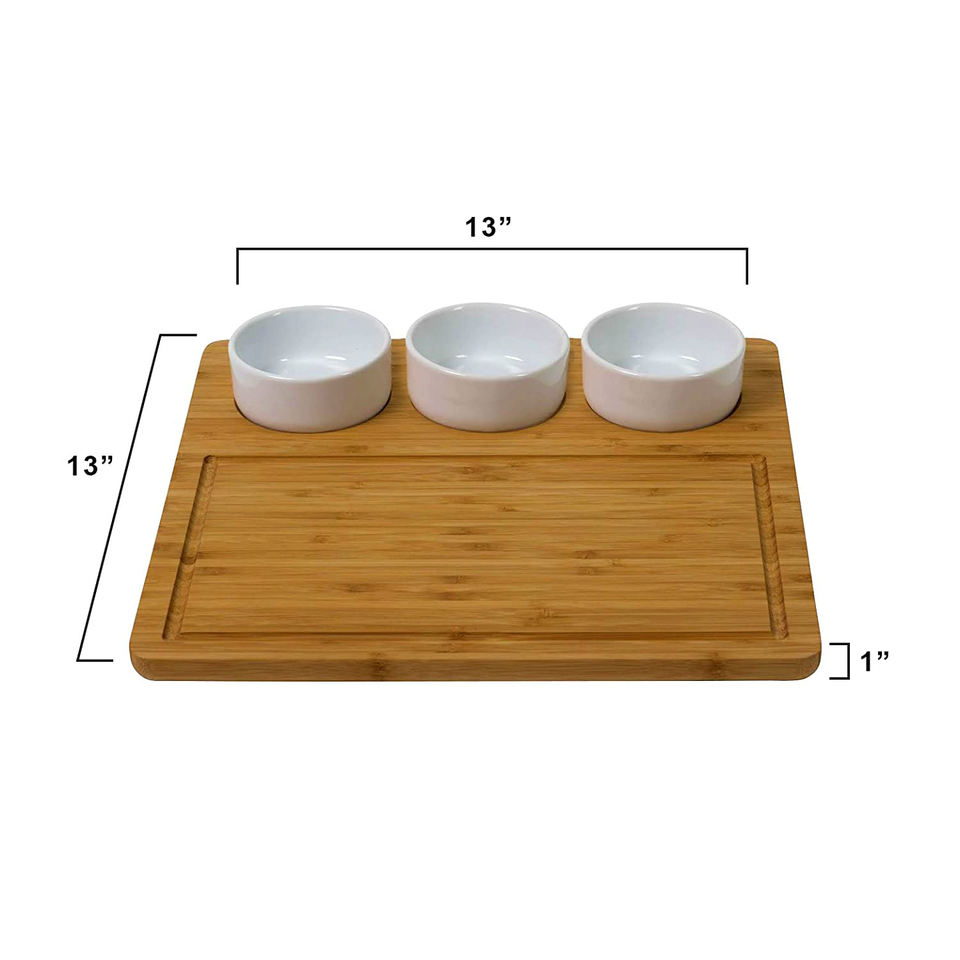 Tabla de queso de bambú con 3 cuencos de cerámica extraíbles Juego de servidor para ensaladas y aperitivos