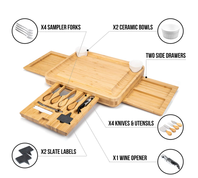 Tabla de cortar queso de bambú con juego de cuchillos