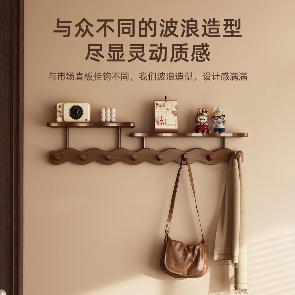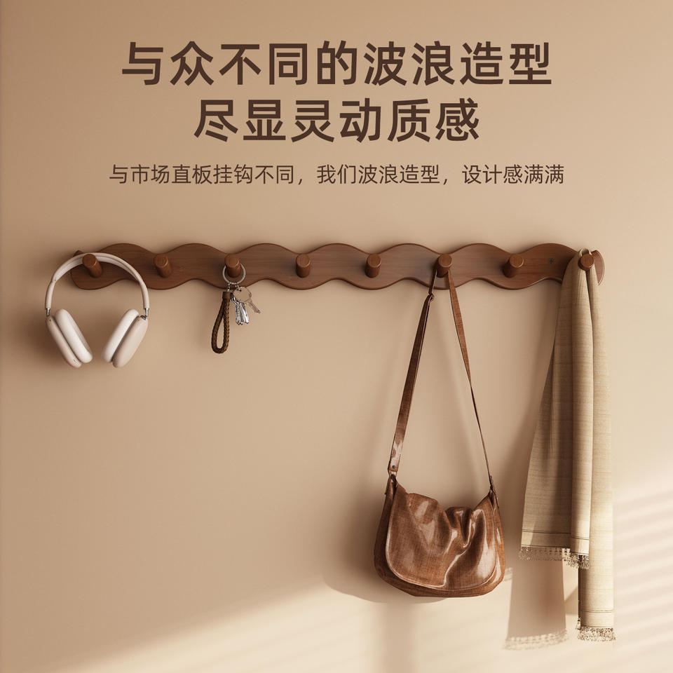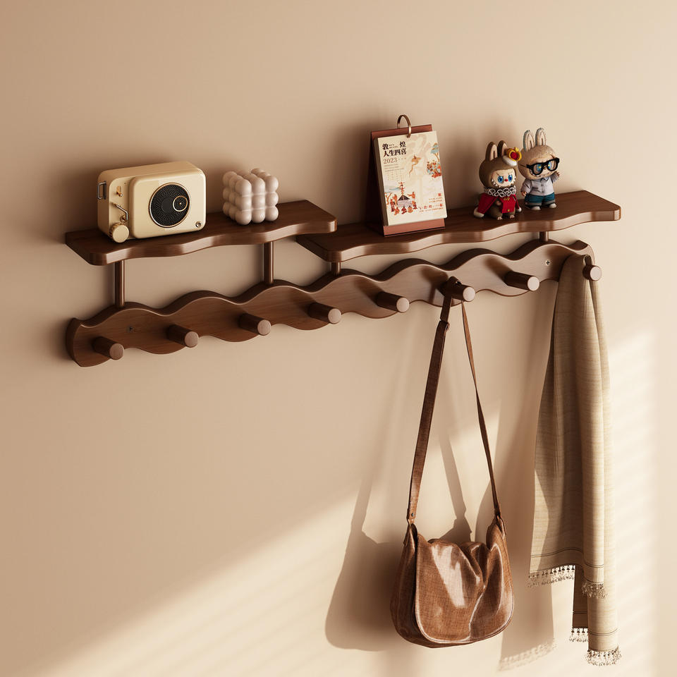 ElegirColor: Perchero de pared con diseño ondulado y capas, 6 ganchos - Marrón