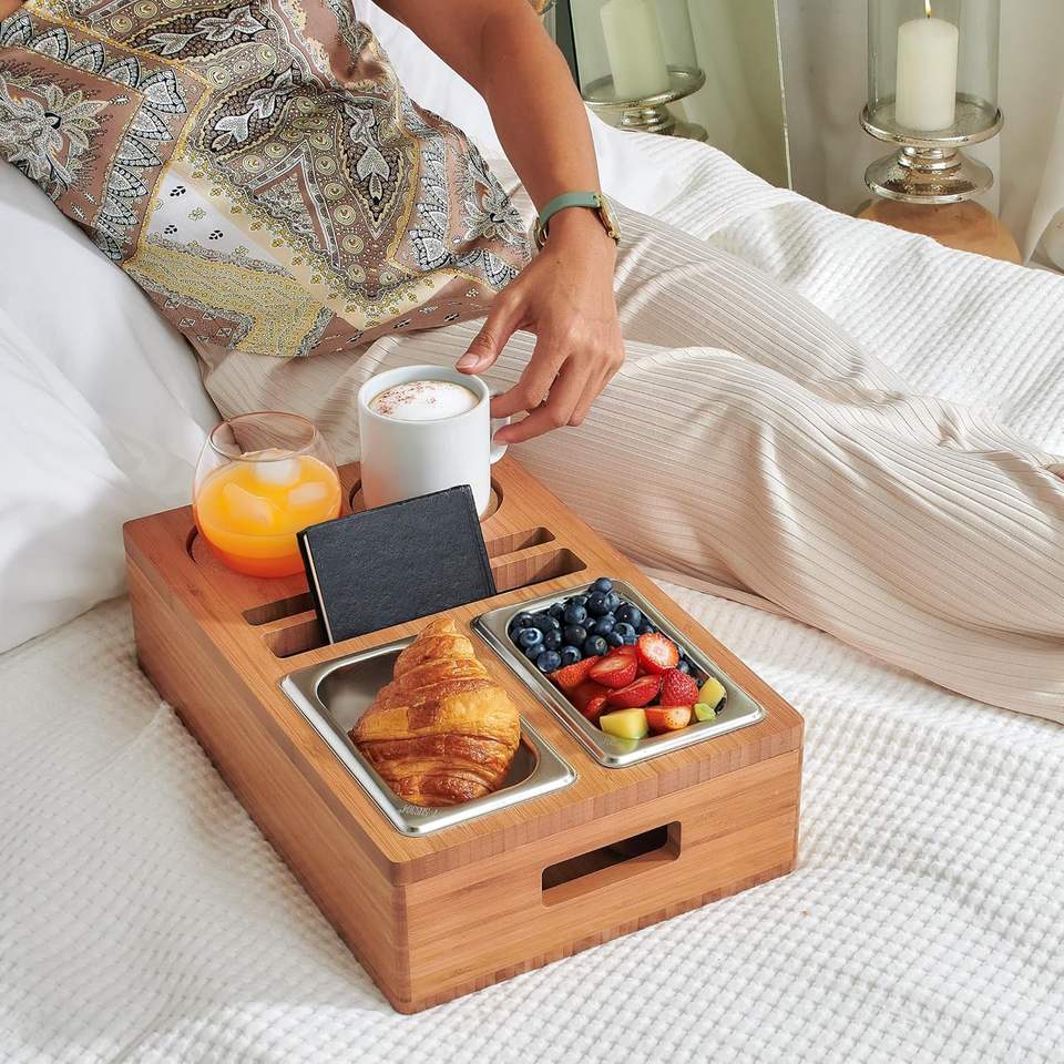 Nombre del Producto:Soporte de bambú para tazas y bebidas con bandeja para aperitivos