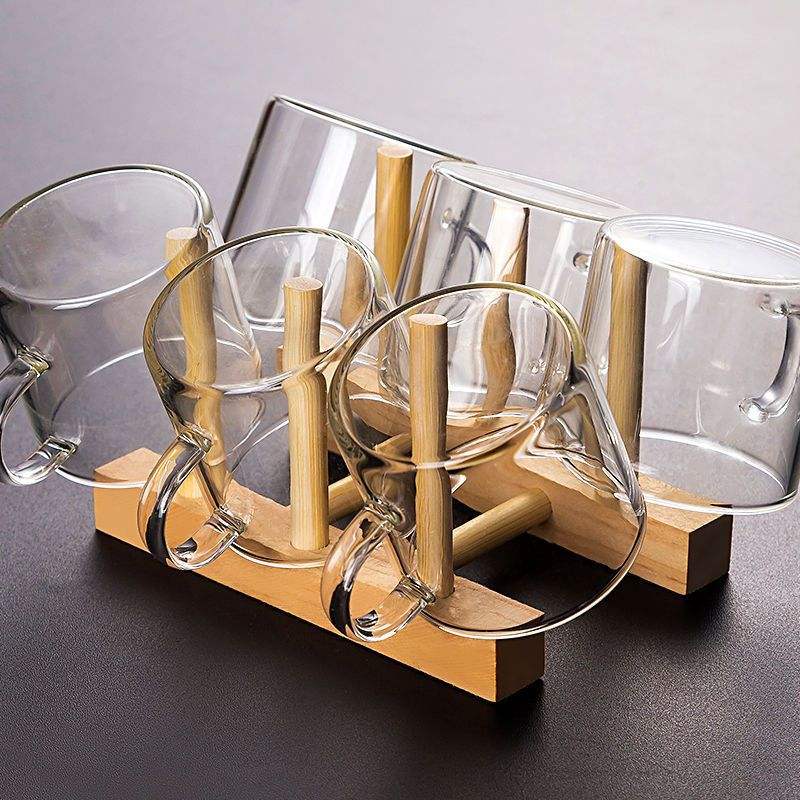 Estante para tazas de bambú con soporte de madera para almacenamiento en la cocina, organizador ecológico para secar platos, forma cuadrada, material natural