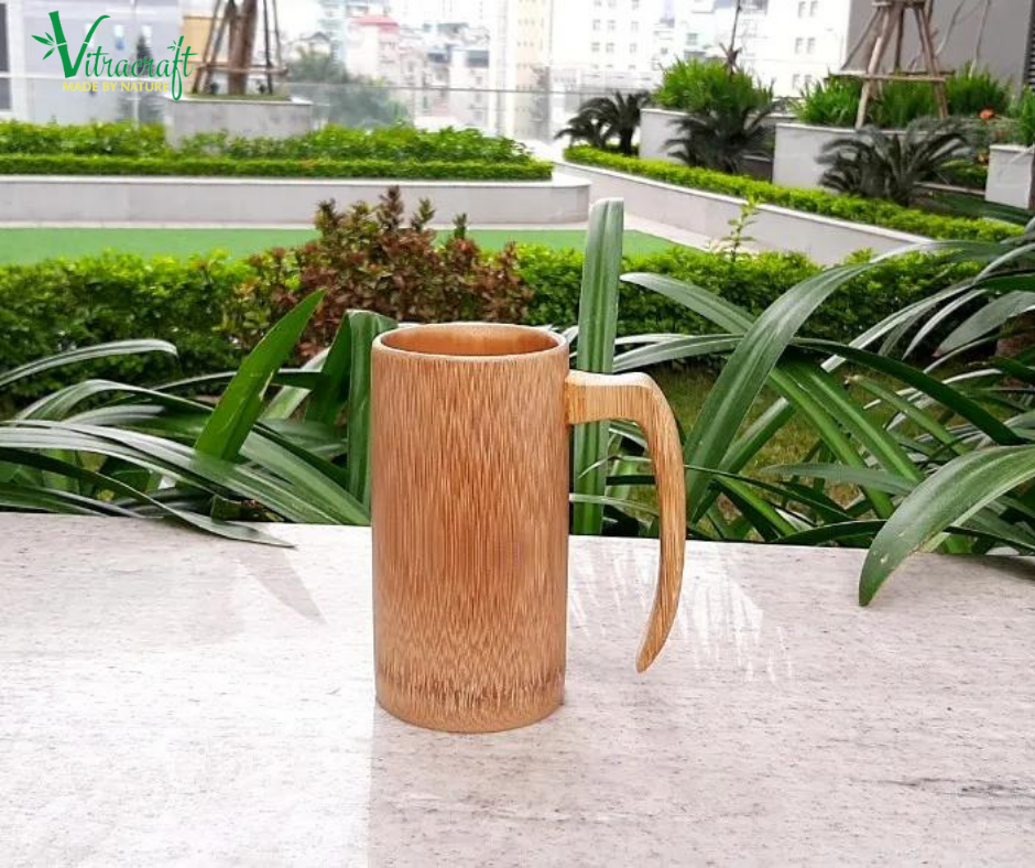Taza de bambú con mango Vietnamita hecho a mano, 100% Taza de bambú, vaso Natural, regalo