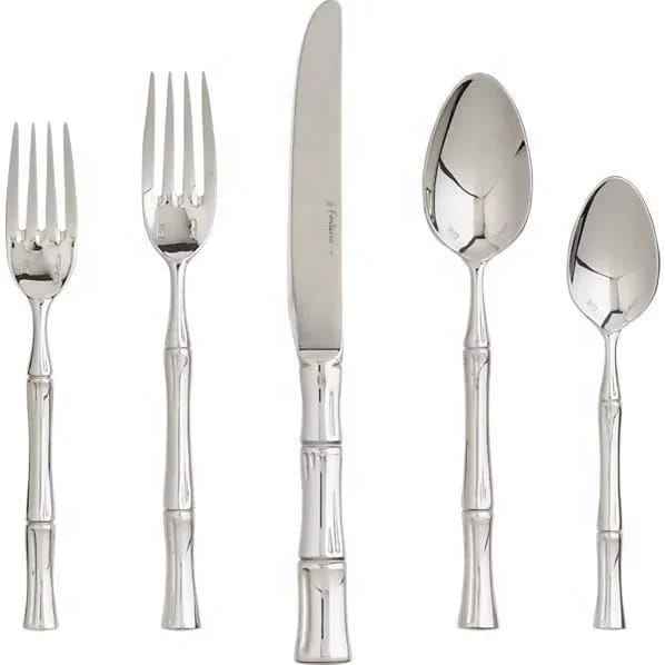 Juego de Cubiertos de Acero Inoxidable con Diseño de Bambú, de la Mejor Calidad, Moderno, de Cinco Piezas, Juego de Cubiertos de Tendencia, Hecho a Mano