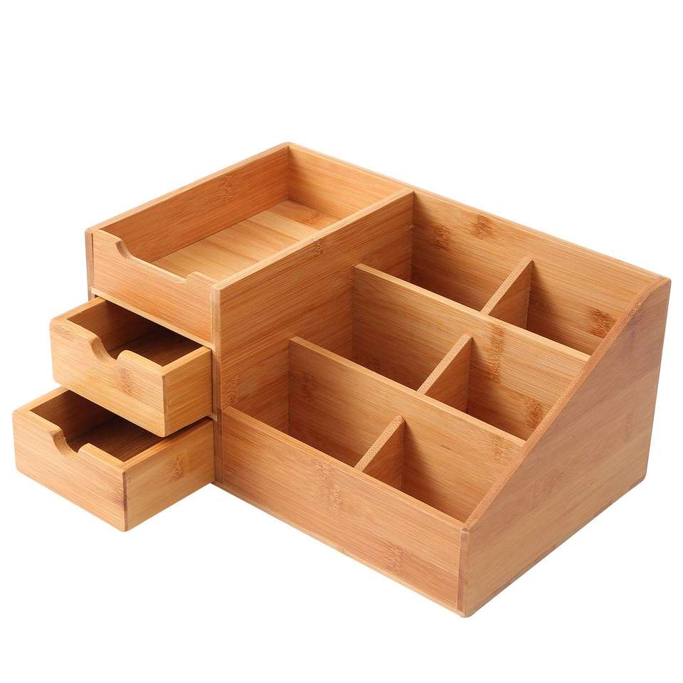 Nombre del Producto:Organizador de escritorio para cosméticos y artículos diversos de bambú.